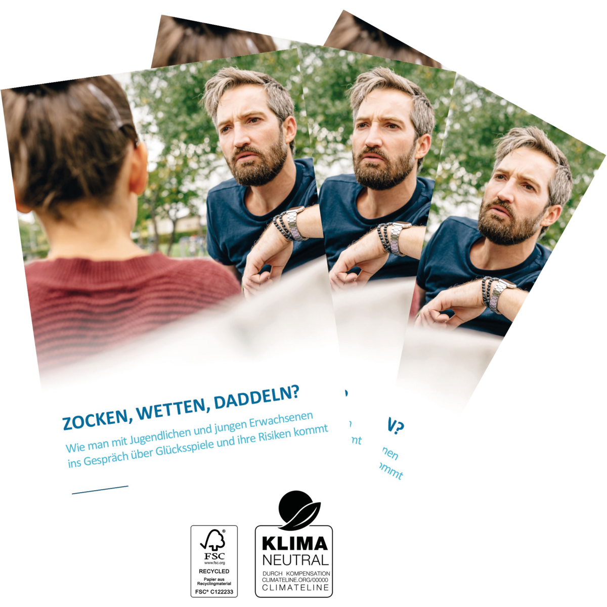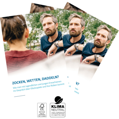 Alle hier angebotenen Materialien sind urheberrechtlich geschützt, die Rechte liegen bei der Landesstelle Glücksspielsucht in Bayern oder der Aktion Jugendschutz Bayern. Sie können die angebotenen Materialien speichern, drucken und zu Ihrer allgemeinen und zur Information Dritter nutzen und weitergeben. Nicht erlaubt ist ein von der Landesstelle Glücksspielsucht in Bayern nicht autorisierter Nachdruck, eine Veränderung der Inhalte und eine Übernahme in andere Publikationen. Dies gilt insbesondere für Vervielfältigungen, Übersetzungen und die Verarbeitung in elektronischen Systemen.